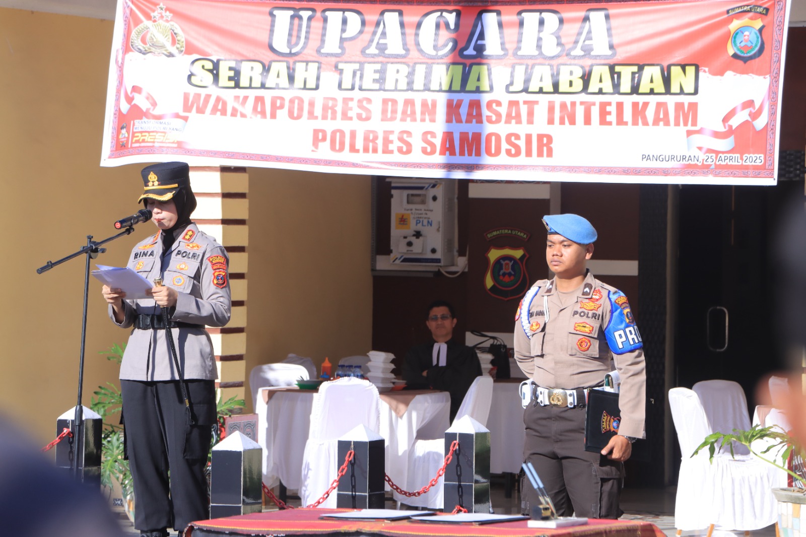Dalam prosesi tersebut, Kompol Briston Agus Muntecarlo, S.T., S.I.K. resmi menggantikan posisi Wakapolres Samosir. Sementara jabatan Kasat Intelkam diserahterimakan dari IPTU Aswan Ginting Suka, S.H. kepada IPTU Donal P. Sitanggang, S.H., M.H.